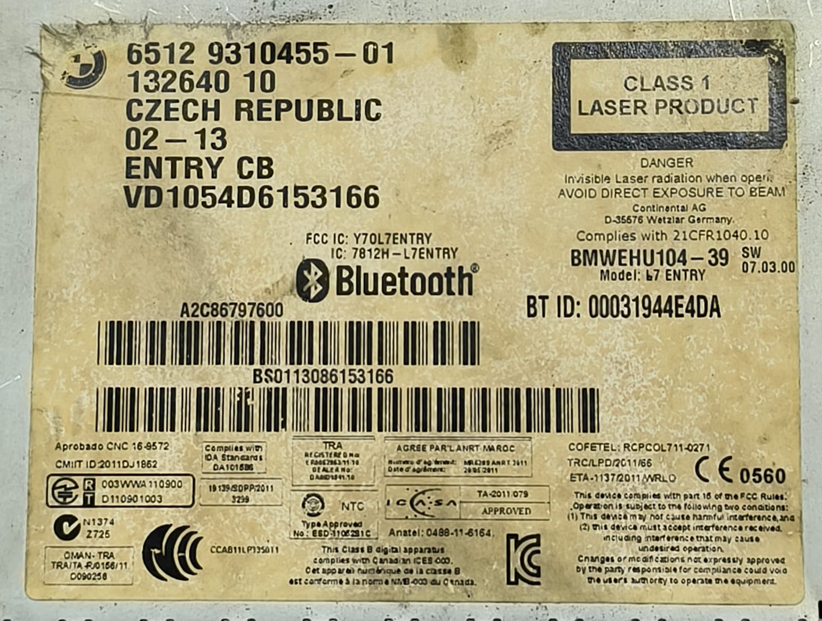 BMW 1 3 SERIES F20 F30 NAVIGATION CONTROL HEADUNIT TAPE 9310455 2012-2019