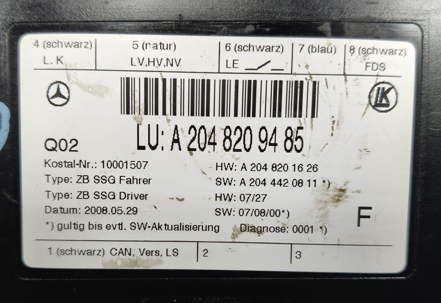 MERCEDES-BENZ C-CLASS C200 W204 FRONT RIGHT SEAT CONTROL MODULE A2048209485 7-14