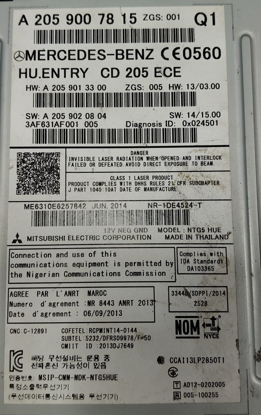 MERCEDES-BENZ C-CLASS C200 W205 RADIO NAVIGATION HEADUNIT TAPE A2059007815 14-21