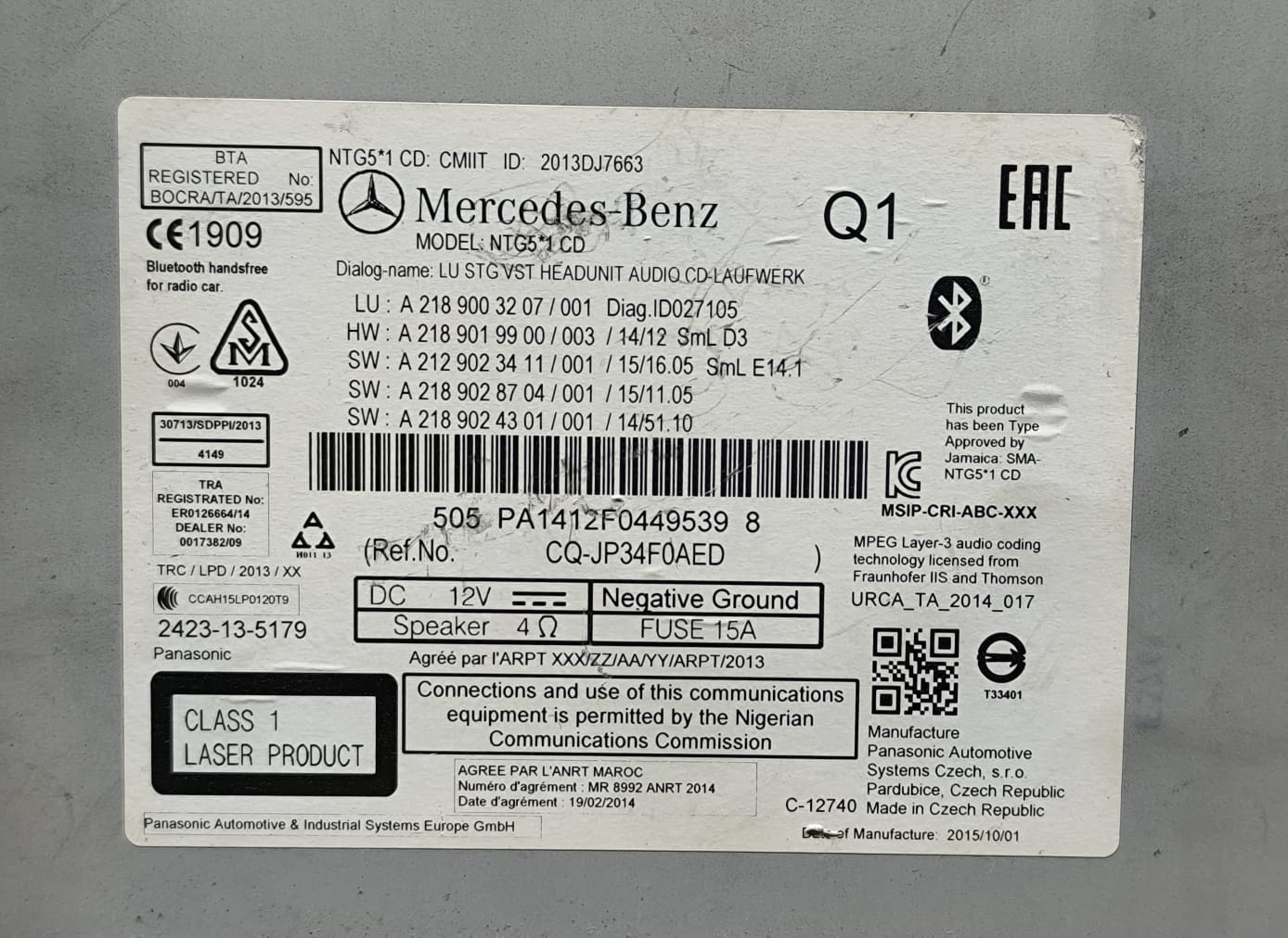 MERCEDES-BENZ W212 E-CLASS NAVIGATION CONTROL HEADUNIT TAPE A2189003207 2009-16
